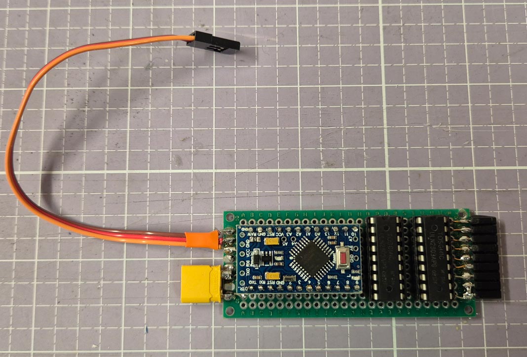 2. Die Mosfets nicht direkt auf die Lochrasterplatine sondern auf kleine Adapterplatinen zu löten. Auf Lochraster passt es nicht so 100%ig und außerdem kann man die Adapterplatinen einfach auslöten, wenn mal ein Mosfet den Geist aufgibt. Aus demselben Grund habe ich auch den Arduino nicht verlötet, sondern in Buchsenleisten gesteckt.