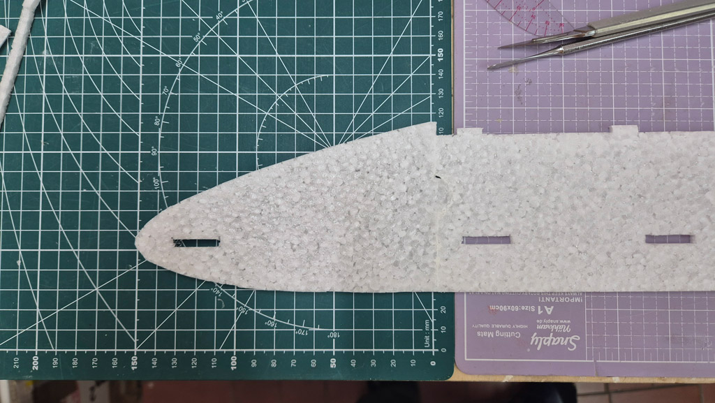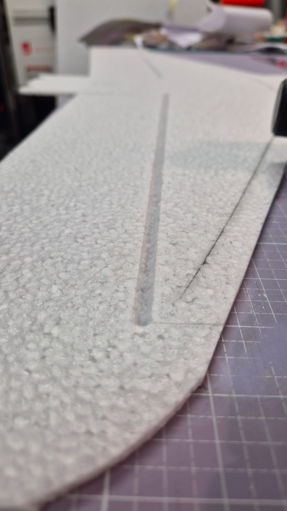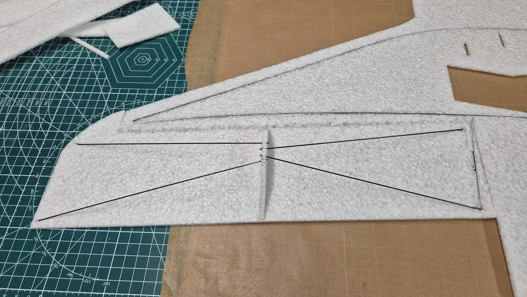 Hier sieht man die Position der beiden Carbonflachstäbe (0,5x3mm) zur Verstärkung. |