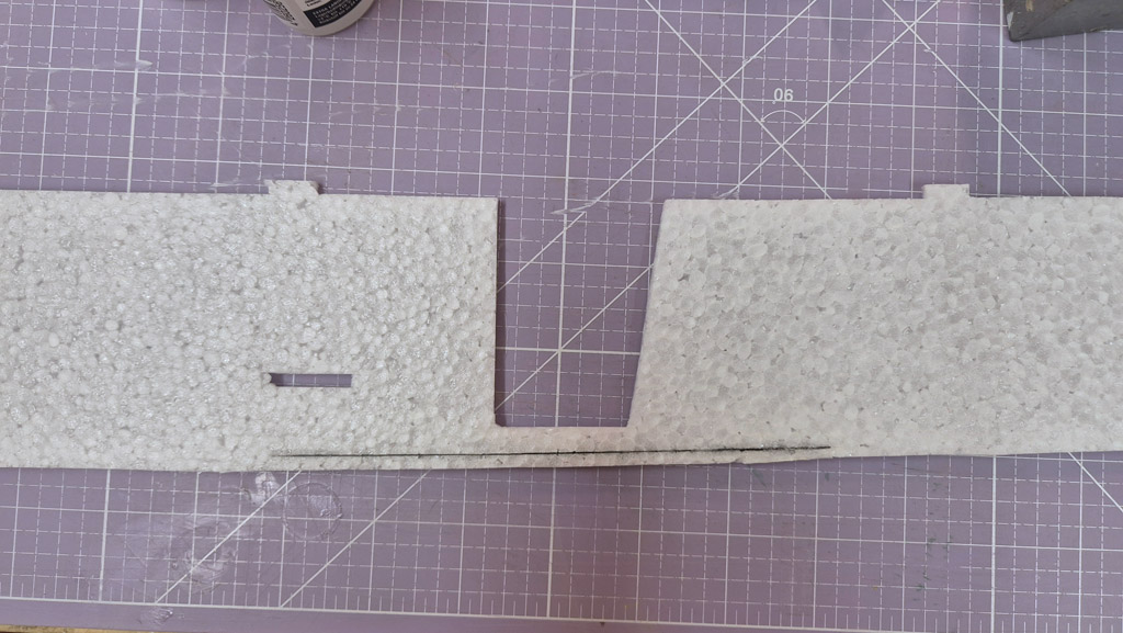 Nut für das Seitenruderscharnier mit der Proxxon Oberfräse eingefräst. |
