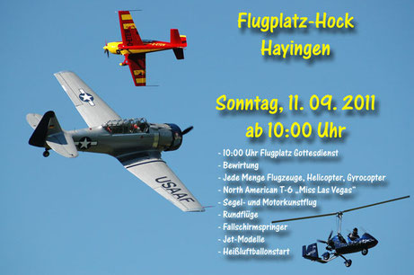 Unser jährliches Flugplatzfest - der sogenannte Flugplatz-Hock - fand dieses Jahr am Sonntag, den 11.09.2011 statt.