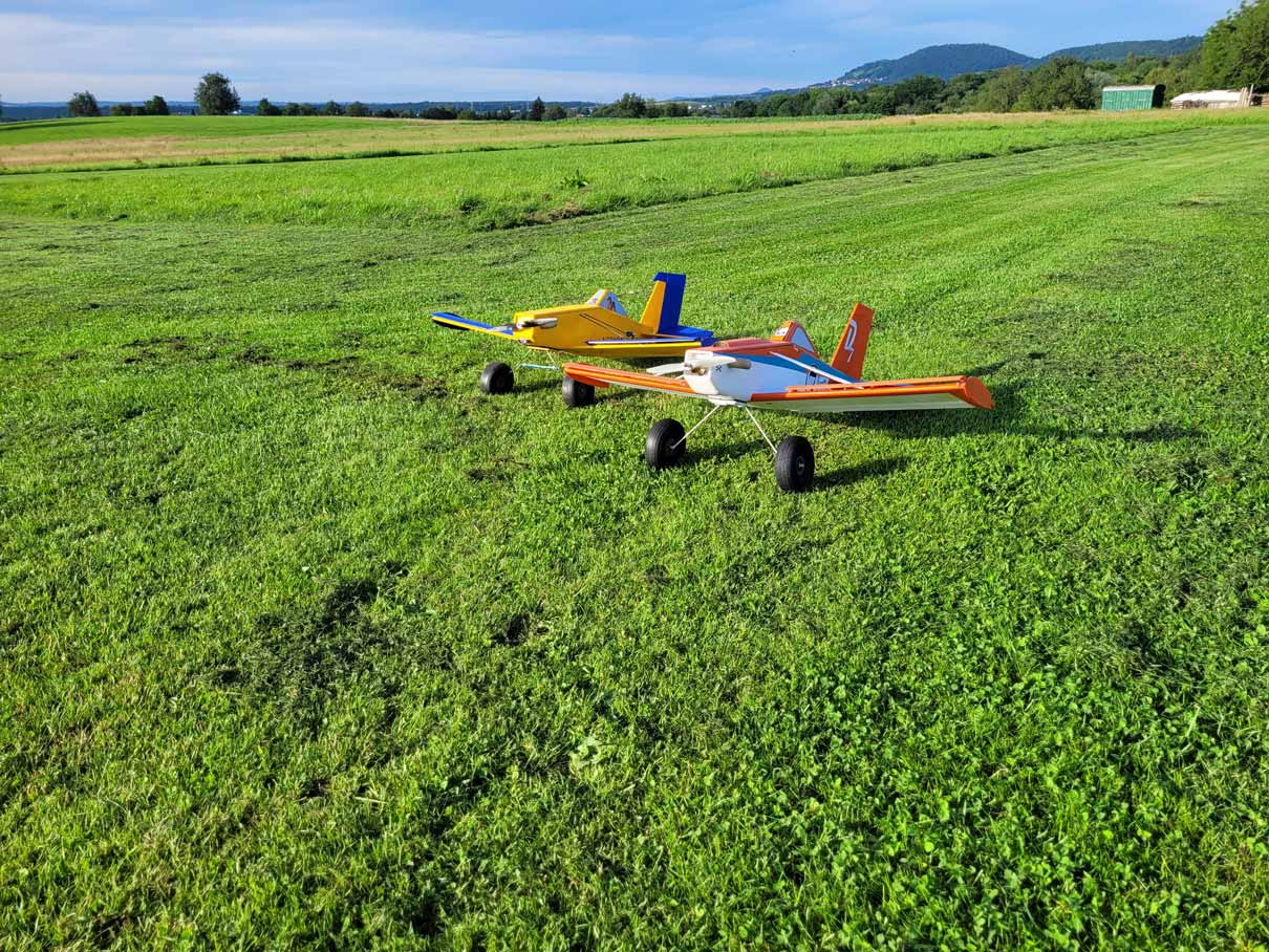 Der Erstflug verlief unspektakulär. Der angegebene Schwerpunkt von 65mm ist etwas zu weit hinten. Durch Verschieben des Fahrwerks habe ich ihn auf 55mm eingestellt. Das einzige Problem, das auftrat, war im Rückenflug. Da wurde der BT wohl etwas zu schnell und ein Vorflügel ist gebrochen. Ich bin dann gelandet, habe beide Vorflügel entfernt und bin dann ohne Vorflügel weiter geflogen. Einziger Unterschied: Der BT ist dann doch deutlich schneller.