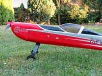 Das neu eGFK Fahrwerk ist schon deutlich besser, als das Original-Alu-Fahrwerk. Allerdings macht sie beim Landen auf Gras immer noch gerne einen Kopfstand. Um das zu vermeiden, hat mir mein Freund Jochen den Tipp gegeben, einfach das Hauptfahrwerk mit einem Keil zu unterlegen, so dass die Räder weiter nach vorne kommen. So sieht das dann aus.