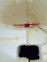 Die BAe ist nun wieder flugbereit. Den Rumpf habe ich mit Beli-Zell wieder "zusammengepuzzled" und mit Styroprleichtspachtel von Robbe und Moltofill verspachtelt. Außerdem war nur eine Triebwerksgondel abgerissen. Diese habe ich mit Sekundenkleber geklebt und mit CfK-Rovings verstärkt. Da ich die BAe mit 5S-Lipos fliegen will, musste der Akku ganz nach vorne. Da man da sehr schlecht hinkommt und auch jedesmal die Tragfläche zum Akkuwechsel abnehmen müsste, habe ich wie bei der Dash 7 eine Serviceklappe angebracht (siehe Bilder).